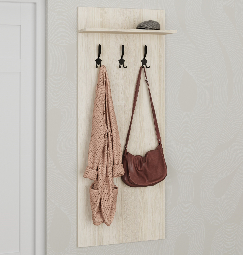 Функциональный мебельный щит для прихожей с крючками для вещей и полкой