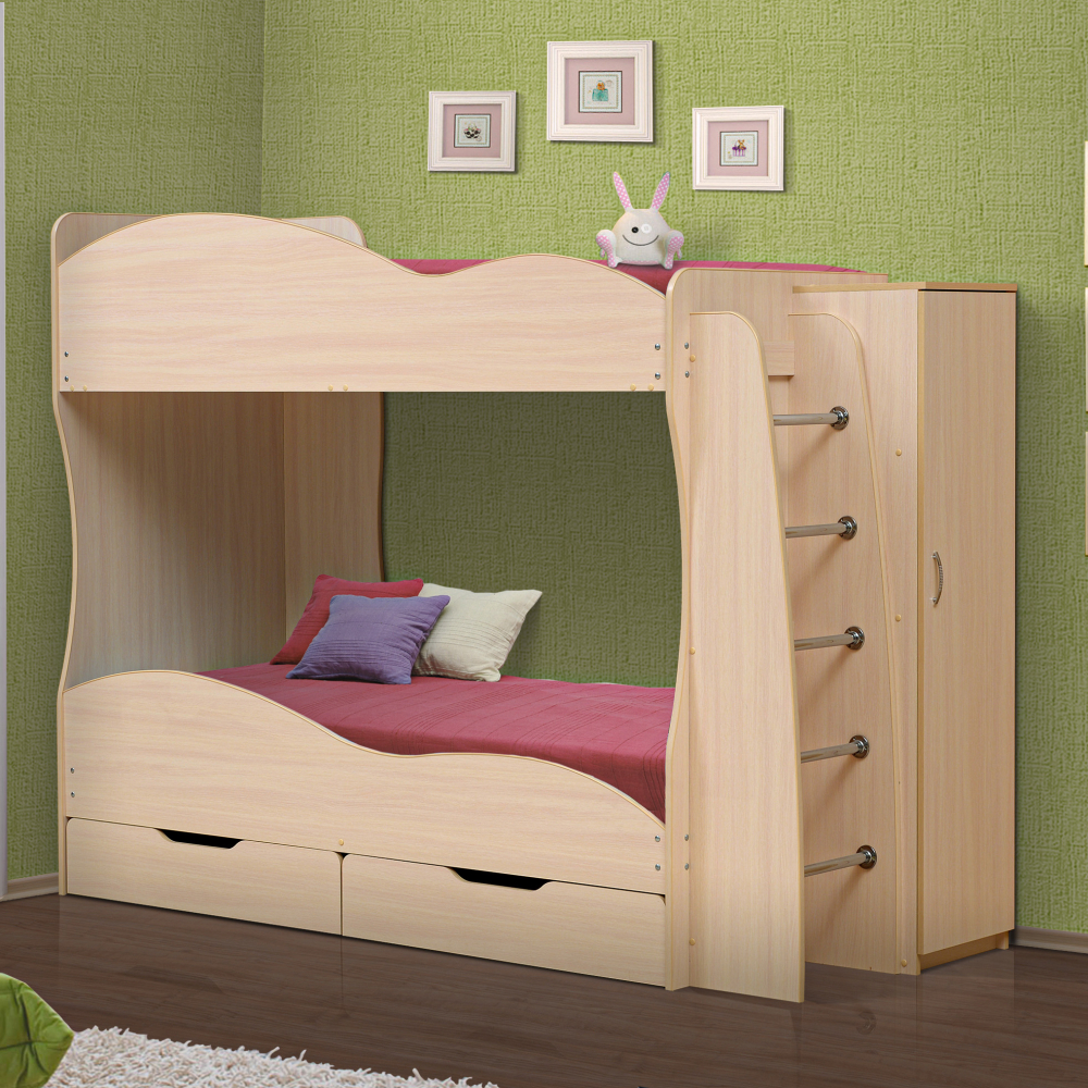 Пространство для двоих: стильная двухъярусная кровать с боковым доступом и шкафом!