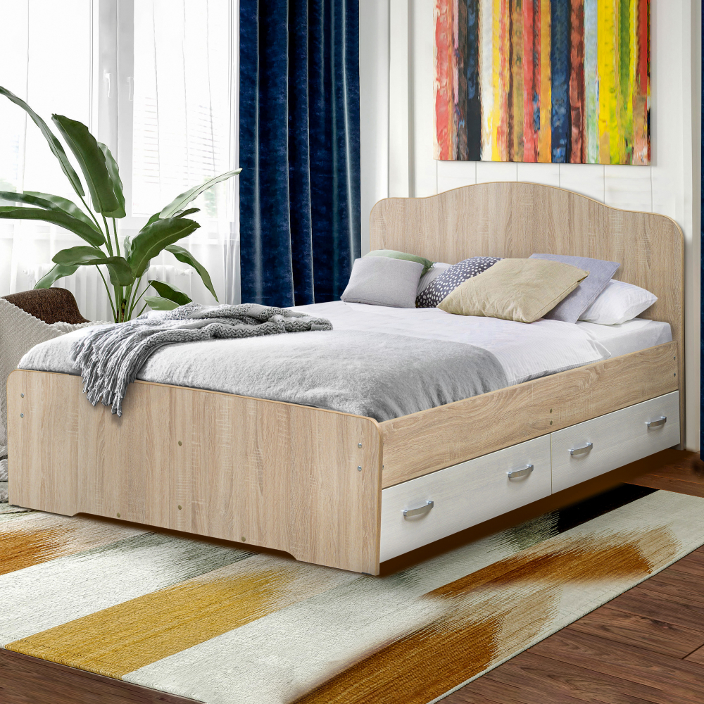 Представляем элегантную двуспальную кровать с двумя вместительными ящиками и изящной низкой спинкой, которая станет настоящим украшением вашей спальни.
