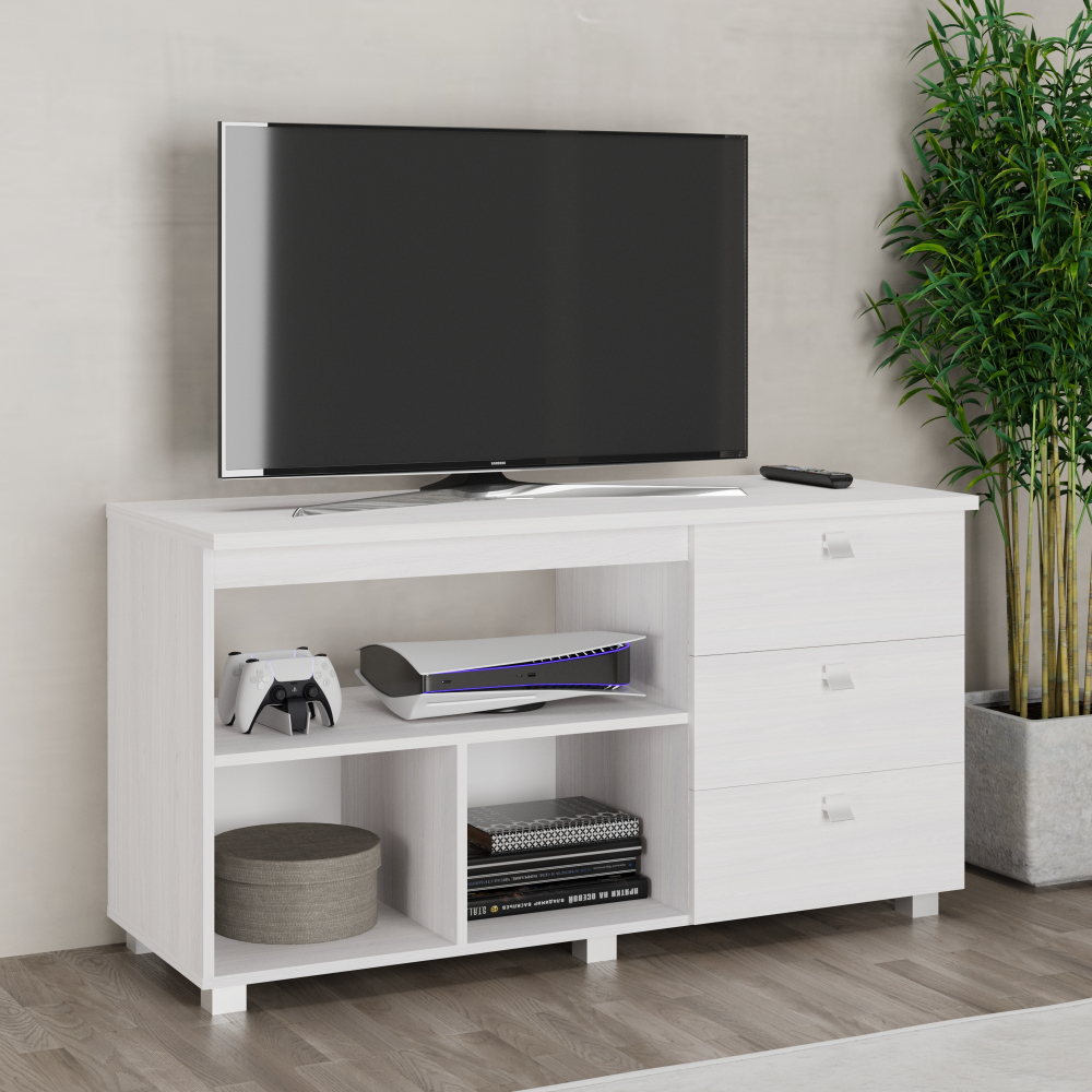 Эта функциональная тумба сочетает в себе практичность и современный дизайн, создавая комфортное пространство для размещения техники и хранения необходимых вещей.