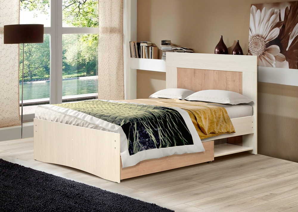 Кровать двуспальная с нишей "Тандем" - 1400/ с ящиком